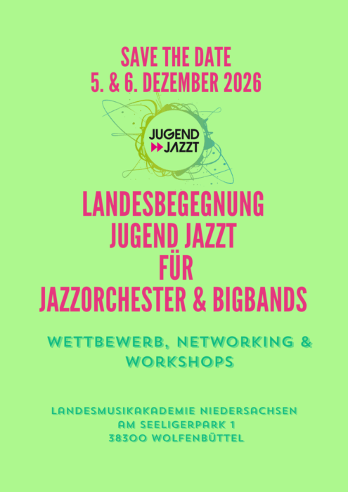 Die 16. Landesbegegnung “Jugend jazzt” für Solist:innen und Combos musste 2025 in Niedersachsen zwar aufgrund der geringen Teilnahme abgesagt werden. Jedoch konnten wir unsere Bewerber:innen freundlicherweise zur Landesbegegnung Jugend jazzt nach Hamburg entsenden, wo sie für Niedersachsen erfolgreich angetreten sind – mit einem wunderbaren Ergebnis: